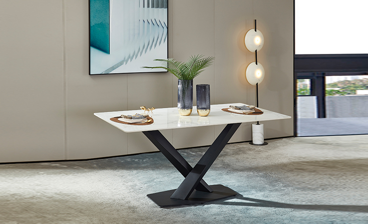 餐桌腿采用“X”造型設(shè)計(jì),現(xiàn)代感極強(qiáng)。見(jiàn)慣了常規(guī)的四條餐桌腿和圓盤(pán)底座,特別的造型給人眼前一亮的視覺(jué)享受。底部焊接加寬加厚的長(zhǎng)方形底盤(pán),增加接觸面積,達(dá)到穩(wěn)定不搖晃的效果。既要美觀又要穩(wěn)固耐用!